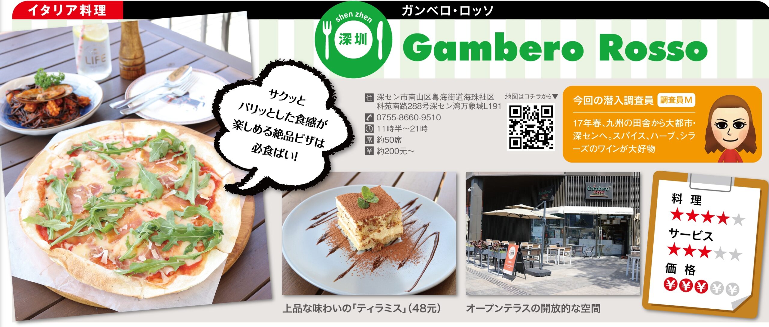 4月に入り、心機一転! ジャピュラン・新企画が始まったばい。今回から、国際色豊かな深センの外国料理を紹介していくよ。第一回目は、中国最大の口コミサイト「大衆点評」で深センの2021年「必吃榜(行くべき店)」に掲載されたイタリアンレストラン「ガンベロ・ロッソ」ばい。サイト上では、種類豊富なピザと、雰囲気のよか店構えが受けとるようちゃ。中でも気になったのが、人気メニュー№2の「トムヤムクン海鮮パスタ」。イタリアンとタイの融合に、ばり心惹かれたばい。