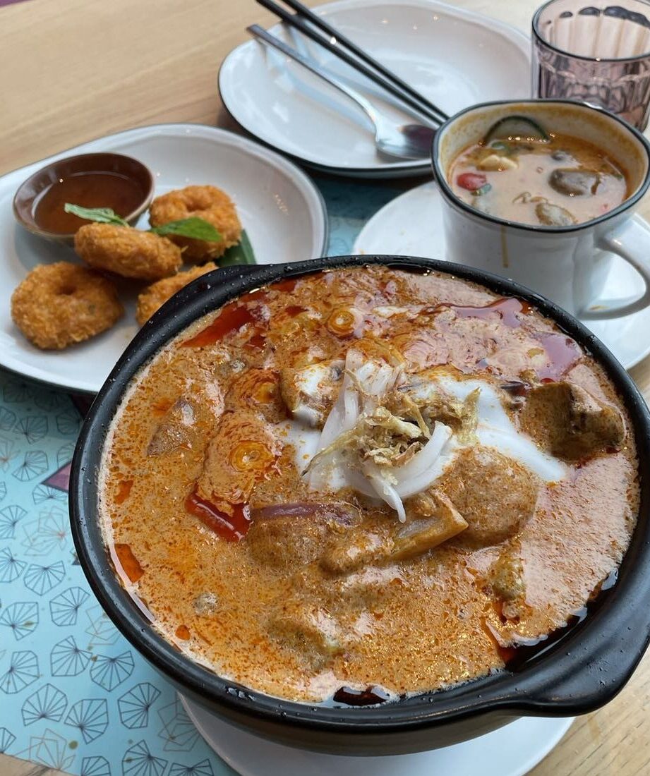 次にやって来たのが、タイに行って食べてから、ハマっている「泰式鱿鱼粒炸蝦餅(エビとイカのすり身揚げ/トートマンクン)」(75元)。これはキンキンに冷えたビールとベストマッチする一品で、サクサクの衣とプリプリ食感の身がたまらなく美味いんや。ここのトートマンクン、ほかの店より大きく食べ応えがあるのが良かったわ。さて最後に来たのがレッドカレーの「馬沙份咖喱牛腩煲」(86元)。ココナッツミルクのおかげでそこまで辛さはなく味わいはマイルド。牛肉もしっかり煮込まれていて、食べやすかったで。