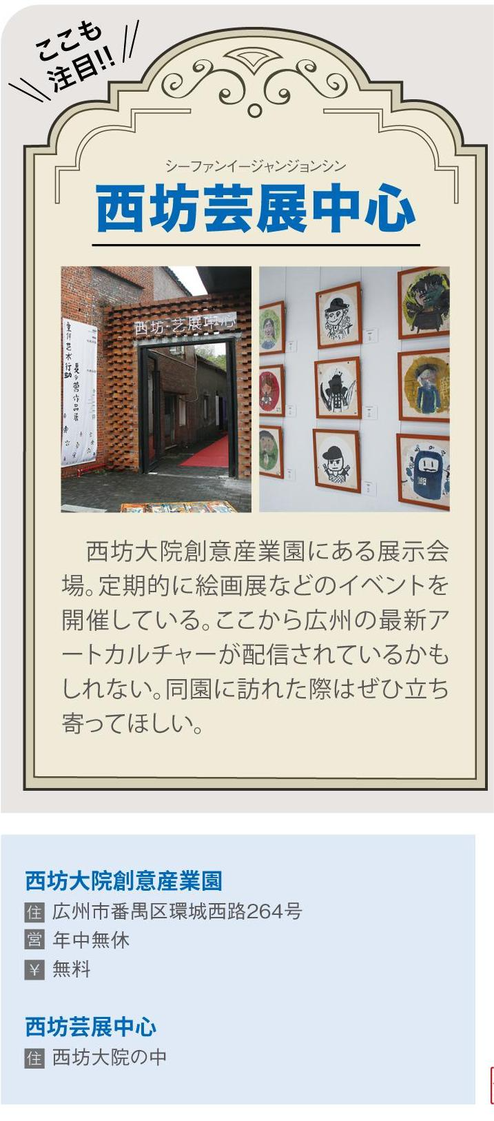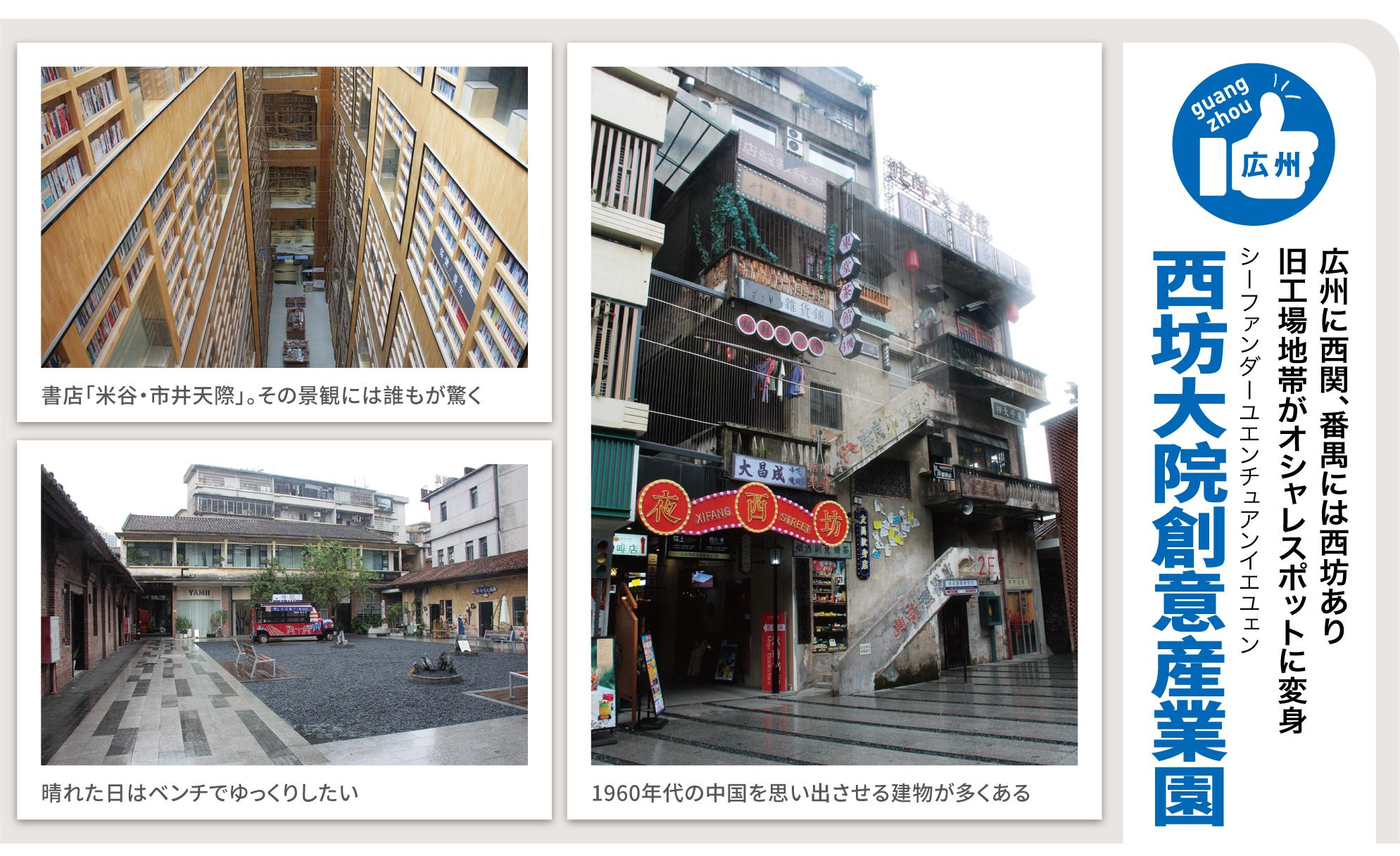 西坊大院文化創意園は番禺区市橋エリアに位置。国営農業副産物総合加工工場の跡地で、改革開放時代の趣きを漂わせる赤レンガ建築物やソビエト建築様式の建造物がカフェやレストランにリノベーションされ、週末にはインスタ映えを求める若者を中心に賑わうオシャレスポットとして人気を集めている。敷地面積は3万㎡を有し、すべて散策するのに2時間ほどは必要。歴史的価値も非常に高く、教養も高めてくれる。