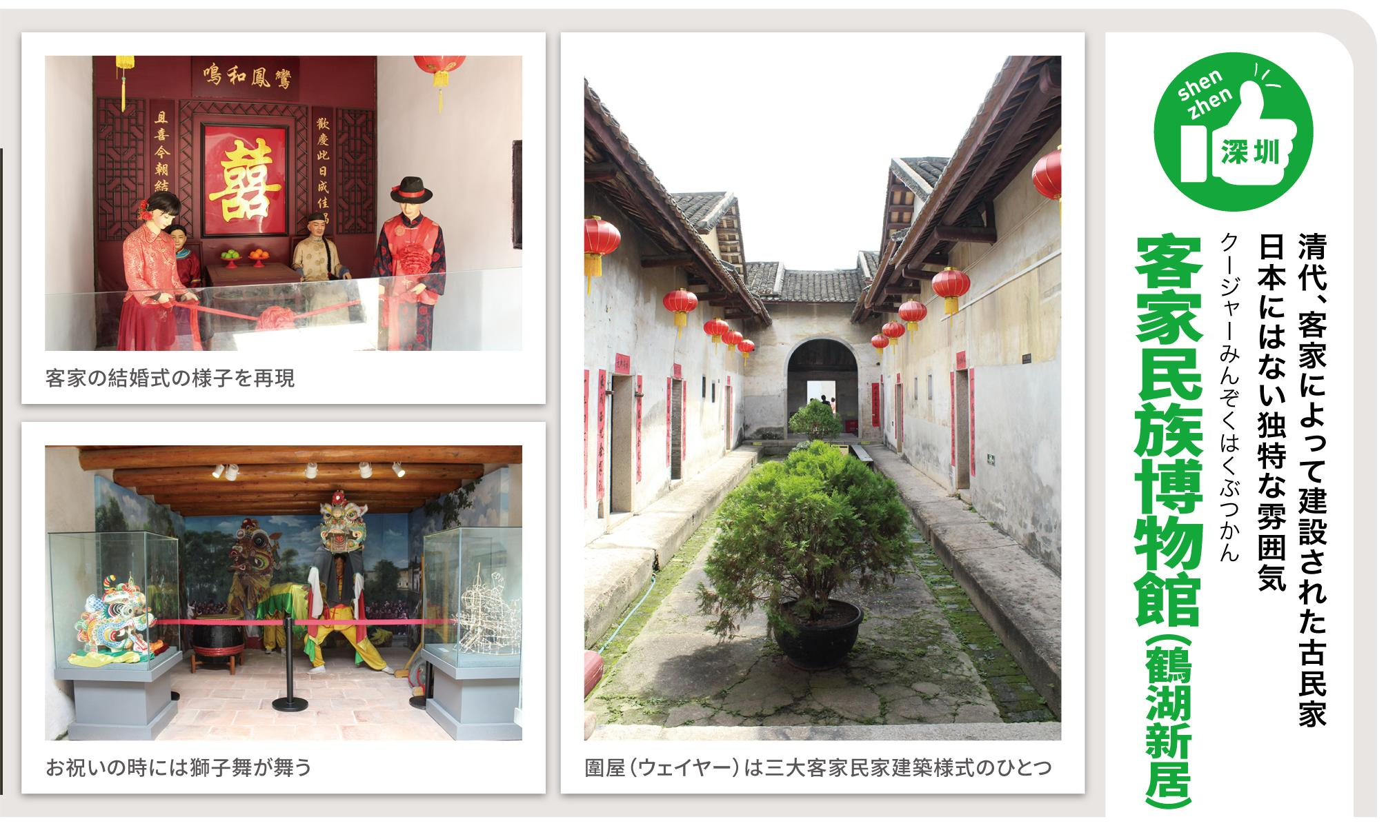 歴史的建築物が少ないと言われている深センで、200年もの歴史を有する「鶴湖新居」。漢民族の中でも独自の伝統、文化、生活様式を形成し「中国のユダヤ人」と呼ばれ、中国台湾や東南アジアで活躍する「客家(ハッカ)」の羅瑞鳳によって建設された民家で、現在では客家文化を伝える博物館として、市民に開放されている。
