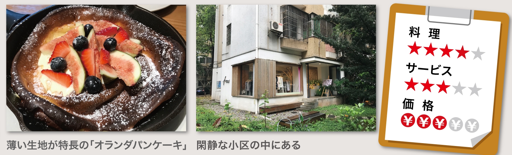 今月はサービスアパートメント「オークウッド」より徒歩5分ほどの場所にあるブティック&カフェ「ザ ポエム」を紹介。このカフェは閑静な小区にオープンしていて、新鮮なベリーやフルーツがふんだんにトッピングされた「苺果烤布里奶酪(ベイクドブリーチーズ)」(128元)のようなオリジナルメニューが多いの特長やな。中でも「荷蘭松餅(オランダパンケーキ)」( 元)が人気メニューのようで、グルメサイト「大衆点評」で「広州の美味しいパンケーキランキング」でベスト4に輝いているんや。そのほかにも、ドリンクメニューも豊富で、平日でも女性を中心に多くのお客さんで賑わっているで。
