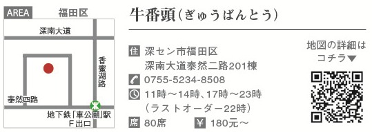 店先に掛けられたひと際目立つ大きな赤提灯。3月初旬、地下鉄「車公廟」F出口付近に肉居酒屋「牛番頭」がオープンした。