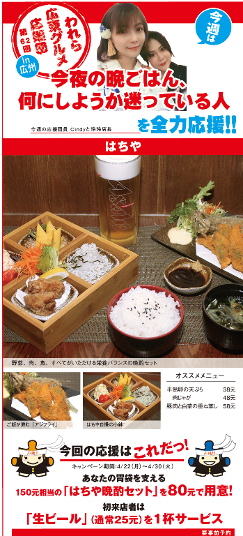 今週もやって来ました広東グルメ応援団。今回応援団に加わってくれたのは、日本料理店「はちや」だ。