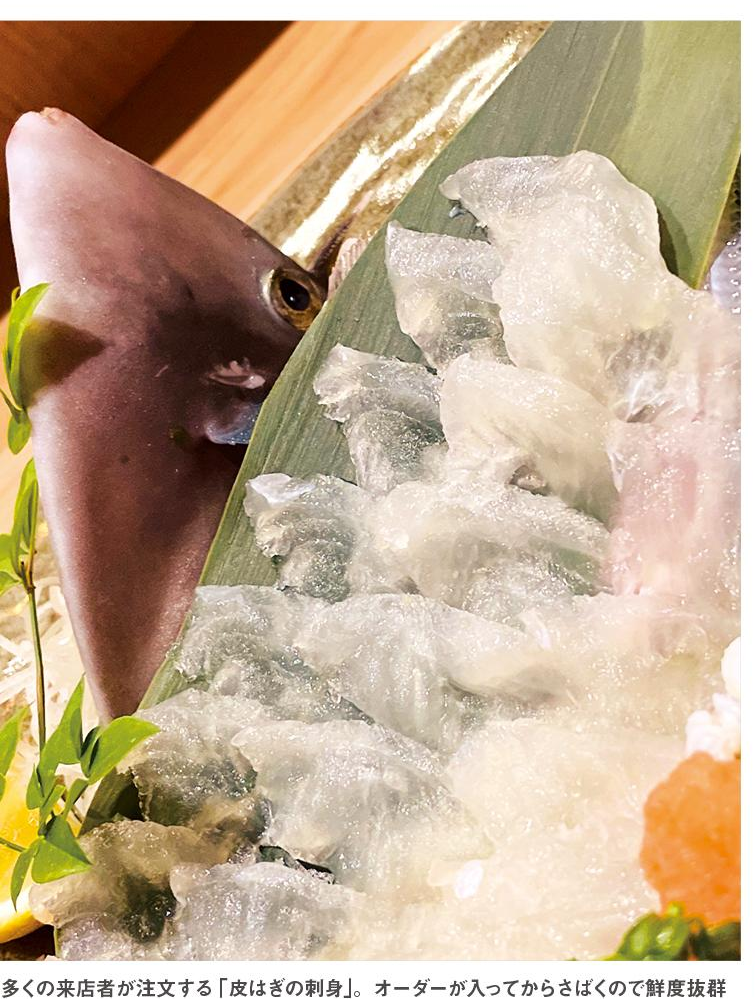 同店には生簀が設置されており、活け魚を使った造りが楽しめるのが特長。今、オススメしているのが「皮はぎの刺身」(100元)。鮮度抜群で、上品な甘みがあり、噛めば噛むほど旨みが広がる。また料理長が当日入荷された食材を元に献立を決める「本日のオススメ」もイチオシ。どんな料理が出てくるかは来店してからのお楽しみ。料理長のセンスが光る一品が味わってほしい。