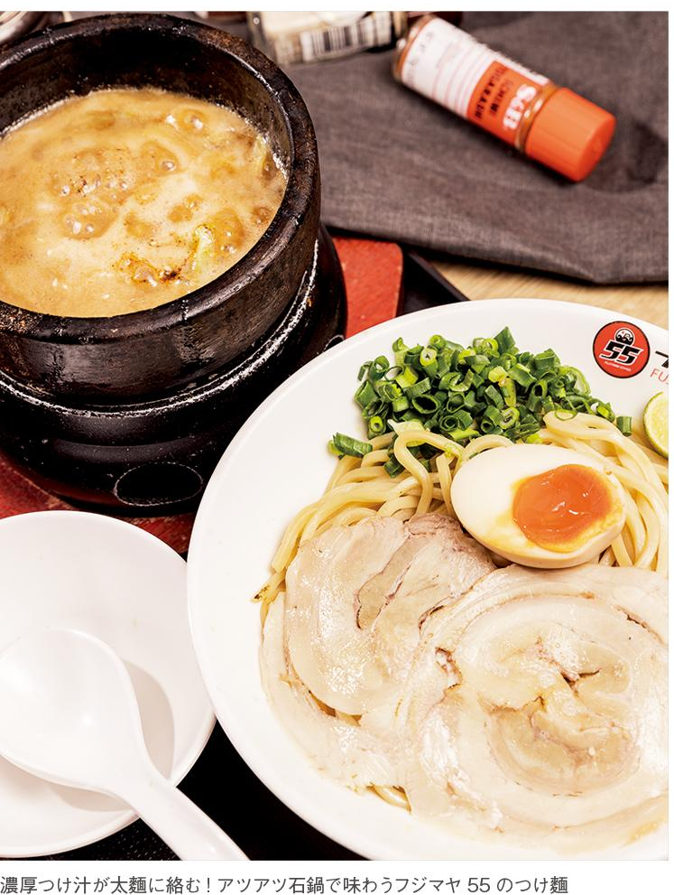 あの人気つけ麺・ラーメン専門店の2号店が体育中心に誕生! 名古屋人ならほとんどの人が一度は訪れたことがあると言われる「フジヤマ55」。丸2日かけて煮込んだトンコツ×鶏がら×魚介濃厚つけ汁とモチモチ太麺が魅力で、一度でも食すとその味の虜になってしまう。