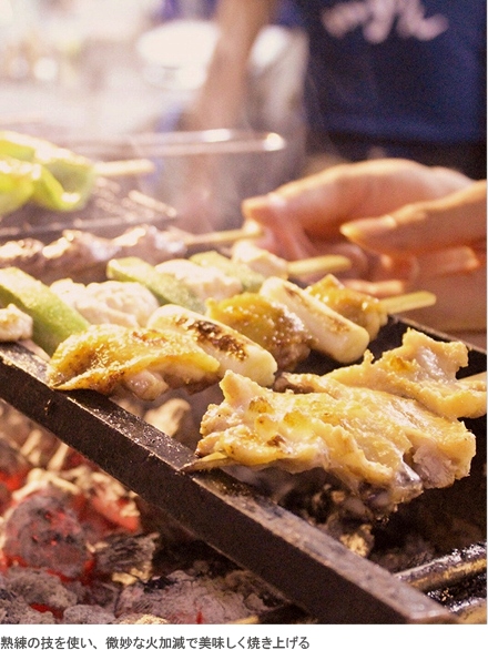 同店では、定番の「つくね」(25元)、「ねぎま」(20元)から「白子」(25元)、「ぼんじり」(25元)に「ちょうちん」(20元)などの希少部位まで、合計16種類の焼き鳥メニューを用意。そのほかにも「ししとう」(30元)などの野菜串や「カルビ串焼き」(38元)、「イカ丸焼き」(88元)のような牛串、海鮮串を取り揃えている。また予算に応じて、宴会コース料理も準備してくれるので、忘年会や歓送迎会にも重宝できるぞ。