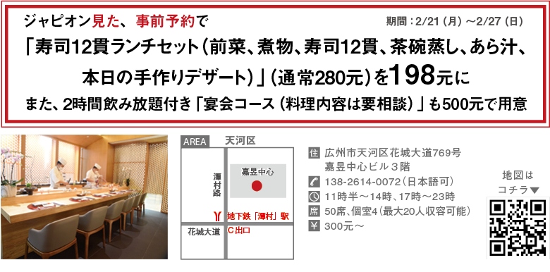 そんな同店でオススメしているのが、料理人の技が光る懐石料理(680元~/人)。日本などから取り寄せた四季折々の鮮魚や野菜を使い、和食ならではの春夏秋冬がもたらす恵みを楽しまさせてくれる。そのほかにも、カウンター席限定、料理人の手さばきを間近で感じられる「おまかせ握りコース」(ランチ480元、680元、ディナー880元、1280元)も人気が高い。料理長が厳選した至高のネタを味わいながら、極上の時間が満喫できるぞ。