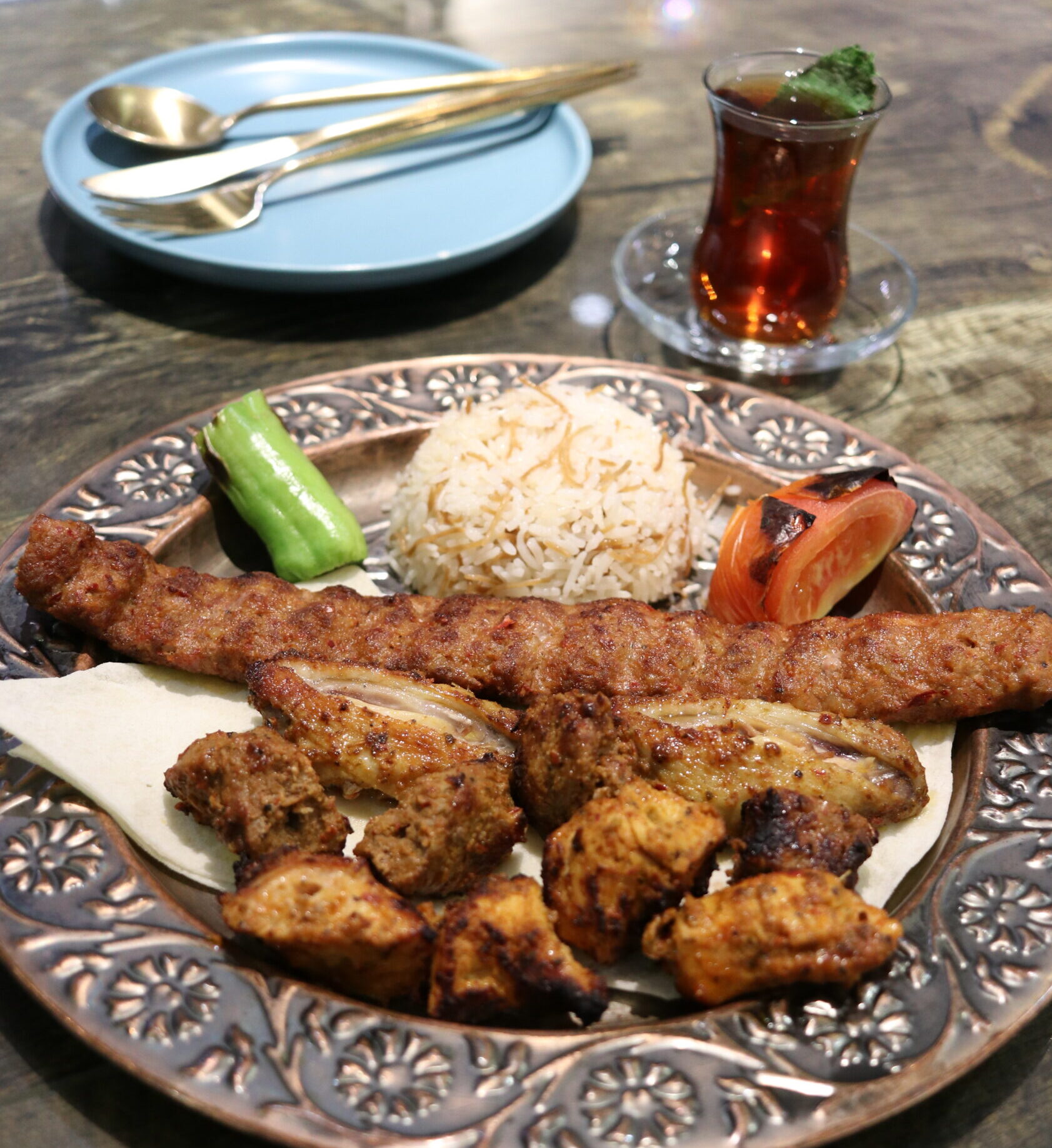 ただしこのお店はお酒の提供や持ち込みは禁止とのこと。ガッツリ肉料理には、ビールや赤ワインを合わせたかったけ残念。やけどその代わりに、トルコ紅茶やコーヒーで健康的に食事をしたっちゃ。