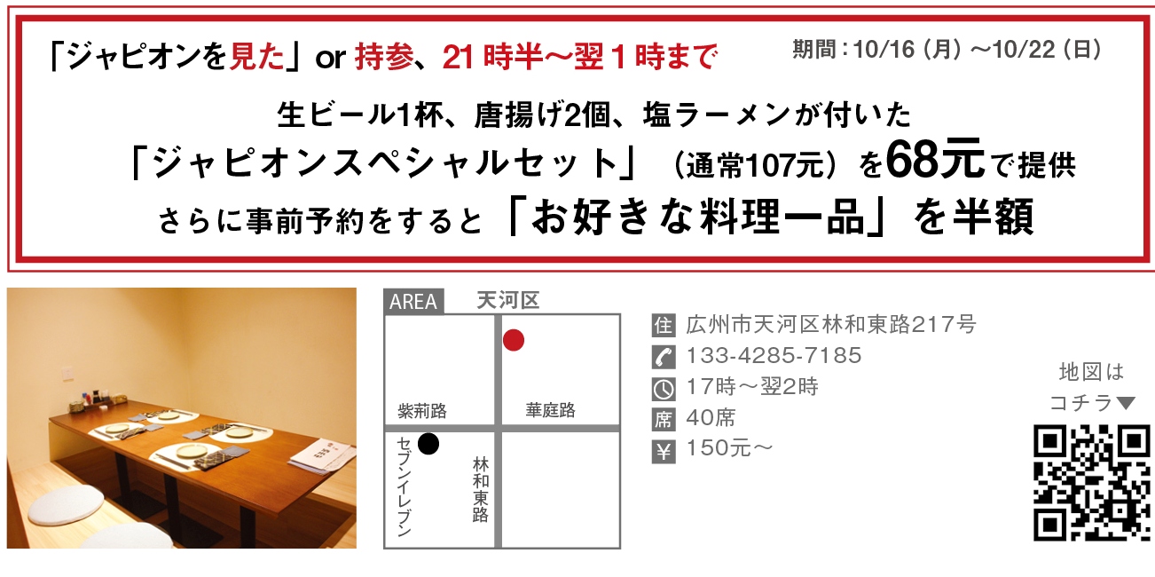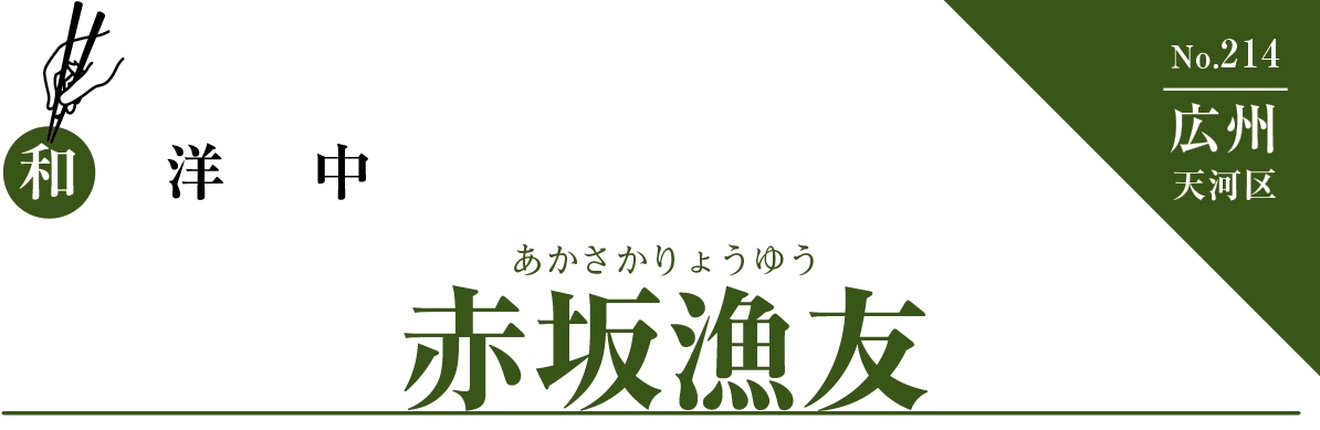 林和東路界隈に新しくオープンした日本料理店「赤坂漁友」。同店は広州の有名日本料理店で十数年修業を重ねた料理長が腕を振るっており、2種類以上の鮮魚を使った「なめろう」(58元)や「秋刀魚なめこおろし酢」(48元)など、オヤジ心をくすぐる一品料理が楽しめる。