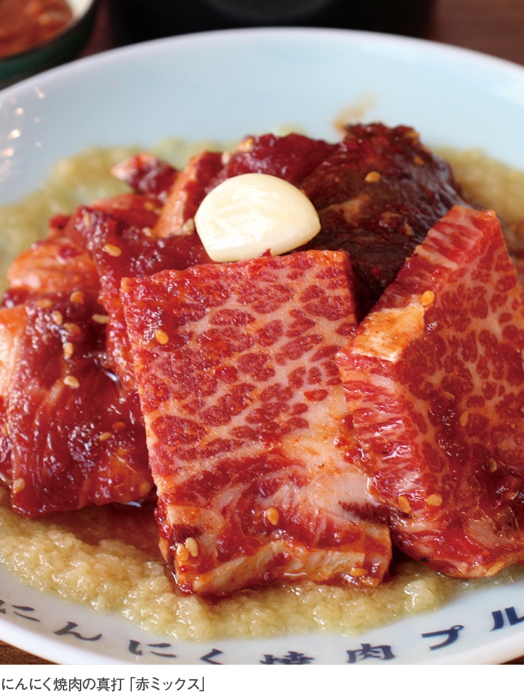 同店の焼肉は大阪コリアンタウン・生野スタイル。もみだれには門外不出の「にんにくダレ」を使用し、シンプルな味わいながら、ヤミツキになる悪魔的美味しさで多くの人を魅了する。また同店は、看板メニューのピリ辛にんにくダレに漬け込んだ「赤ミックス」(68元/小、118元/大)をはじめ、肉メニューは全6種類と少なめ。「メニューを限定することで食材を厳選し、本当に美味い肉を届けている」と店長は話す。