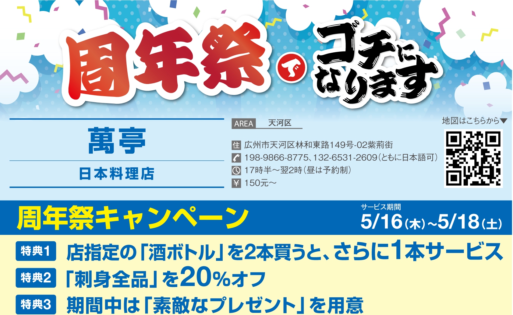 そのような「萬亭」は5月16日(木)から3日間、5周年キャンペーンを開催。「酒ボトル」を2本購入するともう1本サービスされるので、まだ訪れたことのない人はこの機会にマイボトルを増やしてみませんか?