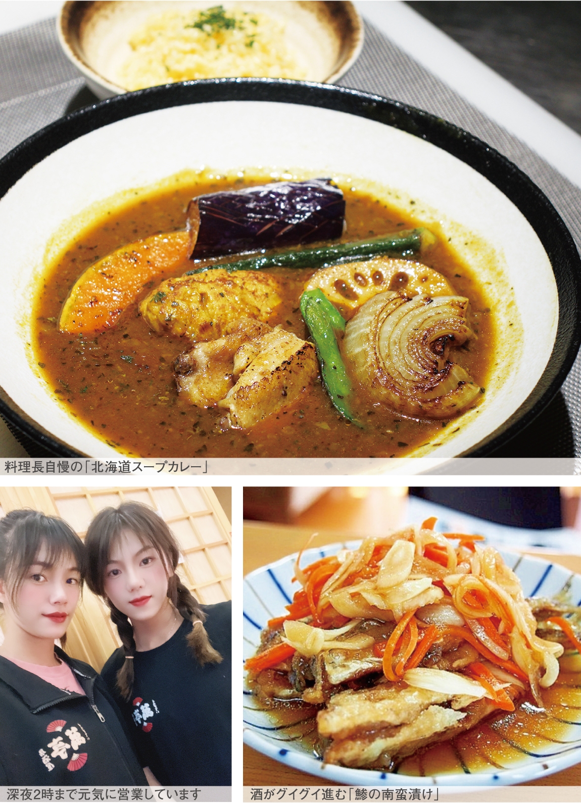 また同店の厨房を仕切るのはこの道十数年の料理長。「鯵の南蛮漬け」などの和食メニュー、「天津飯」などの中華メニューに「北海道スープカレー」のような洋食メニューまで、幅広い料理を提供しているのも魅力のひとつ。また週替わりで料理長オススメの一品が登場するので、来店時は忘れずにチェックして欲しい。