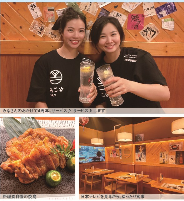 体育西路、六運一街界隈にオープンしている日本料理店「なごみ」がオープン4周年を迎えた。同店は家庭的で優しい味わいが楽しめる一品料理と居心地良い空間で心がほっと和める癒しの食事処。店内にはテーブル席やカウンター席のほかに個室も完備しており、最大10人まで入室可能となっている。日本語が話せるスタッフもいて、日本のテレビも視聴可能なので、1人でも気軽に来店できるだろう。