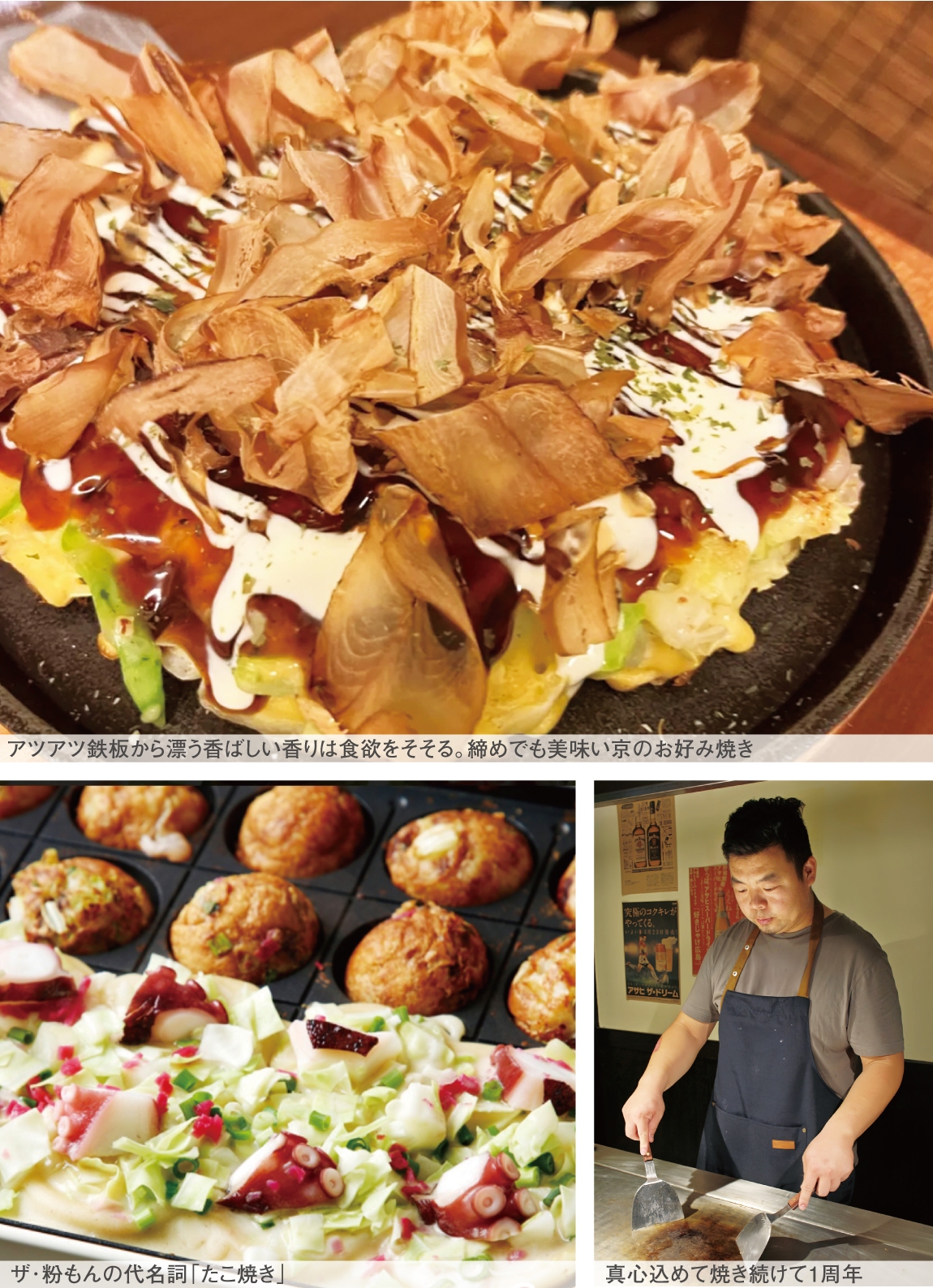 同店の看板メニューと言えば、豚肉、牛肉、鶏肉、紋甲イカなどが楽しめる「鉄板焼き」(48元~)。山椒がピリッと効いた秘伝のタレが爽やかさを演出し、ペロリといただける。そのほかにも「お好み焼き」(58元~)や「焼きそば」(48元~)のような粉もんメニューや「シマチョウ」(68元)や「ニンニクの芽炒め」(58元)などの鉄板一品料理も取り揃えており、様々な味わいが楽しめるのもうれしい。特に京都、祇園名物、ネギやこんにゃくなどの具材がドッサリ入った「一銭洋食」(68元)はイチオシ。ソース味の効いた昔懐かしい味わいで、おじさん心をグッと掴むはずだ。