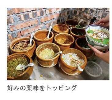 そんな人気上昇中の牛肉米線。「なんで人気があるんやろ?」と理由を考えた結果、「安くてボリューム満点なのにヘルシー」と個人的に結論を出したんや。と言うのもこれまでローカル麵屋は男性がメインのような感じがしたんやけど、牛肉米線店は女性も比較的多いような気がするんやな。実際食べてみると、重慶小麺などの人気麺と比べ、脂っこさが少なく、トッピングされている野菜も多いんや。これなら女性はもちろん、おじさんでもペロリと食べられるで。
