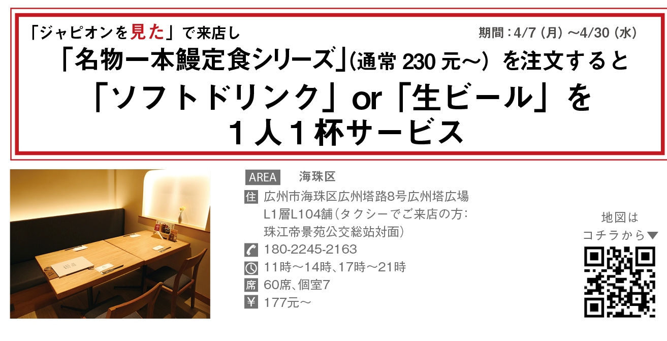 鰻の名店が広州に来た