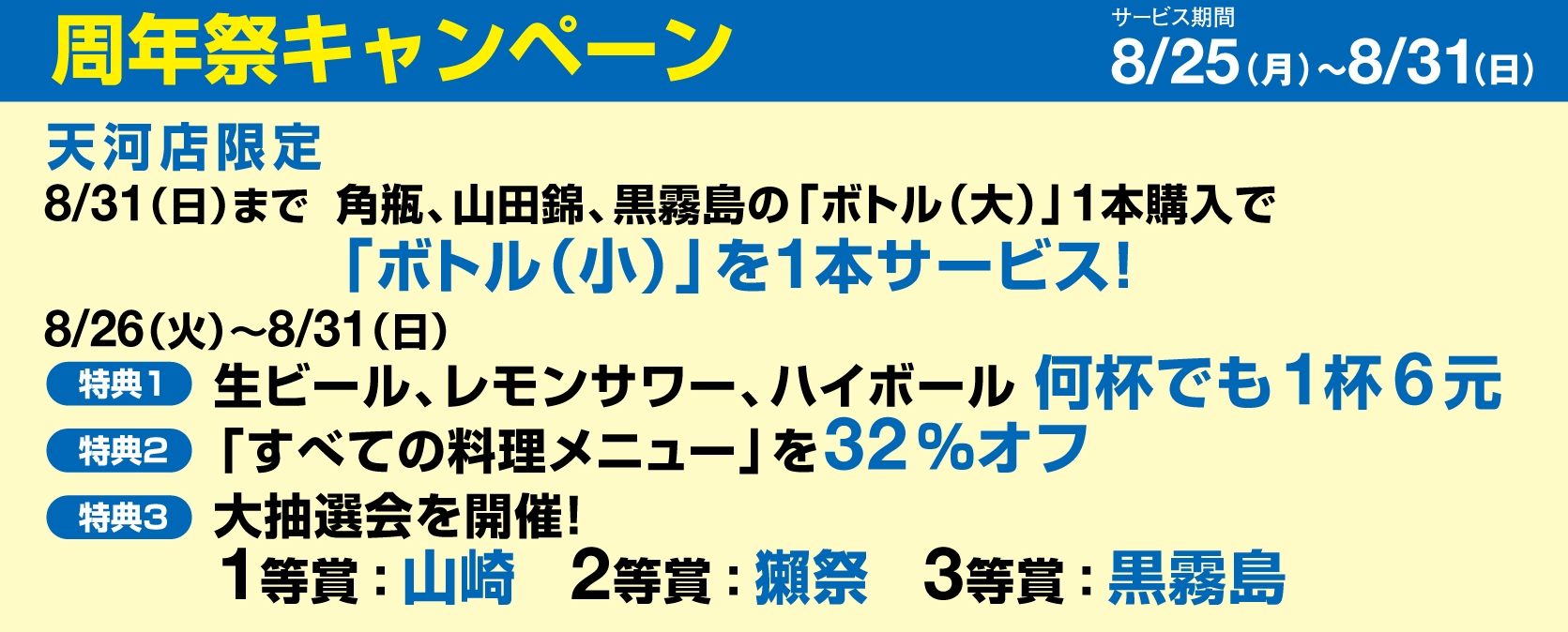 8月末まで、様々な特典を用意する「和楽 天河店」。ゆったりとお得に日本料理に舌鼓を打てるチャンスだ!