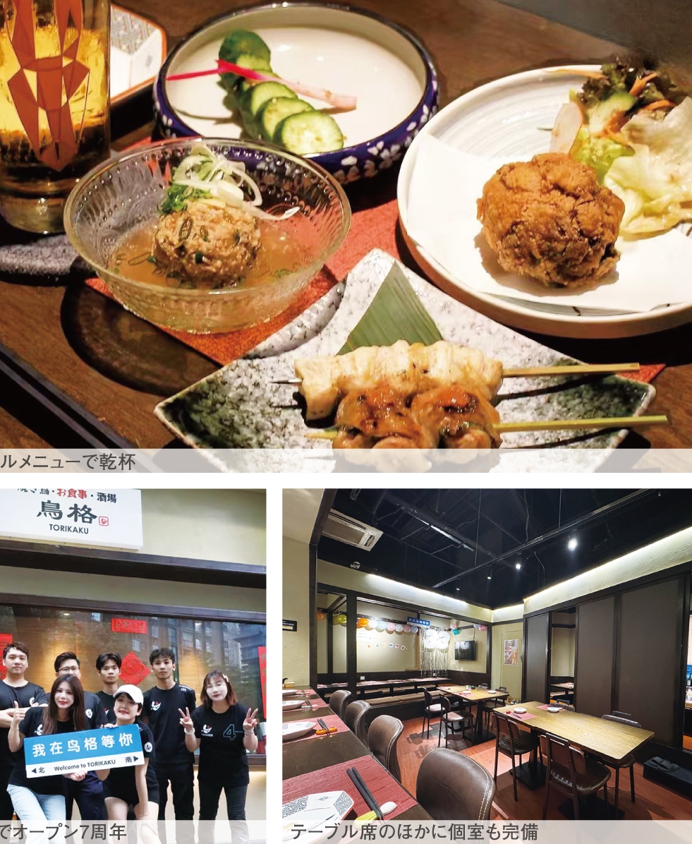 人気焼鳥店「鳥かく」がオープン7周年を迎えた。同店は広々とゆったりとした店内で、テーブル席のほかに個室を5部屋完備。最大16人収容可能でサークルの打ち上げや県人会の飲み会などに重宝されている。そのほかにも同店はゴルフコンペを企画しており、定期的にゴルフ好きの日本人が集まり、交流を深めている。