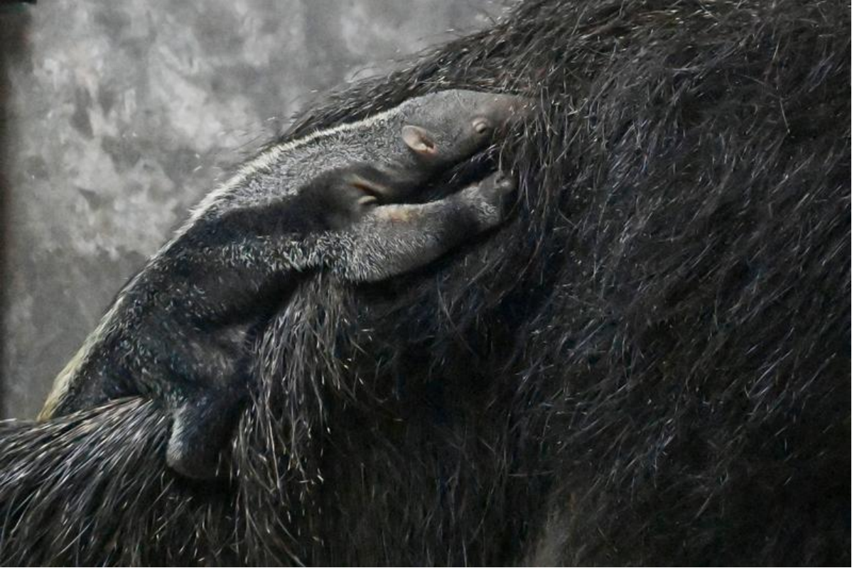 深セン野生動物園のオオアリクイ館内で4月16日(土)ごろ、1頭の赤ちゃんが誕生した。4月26日(火)には母親のオオアリクイは赤ちゃんを背中に乗せて慎重に歩き、赤ちゃんオオアリクイは母親の背中で揺られながら、スヤスヤ眠っているようであった。