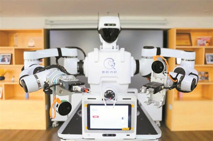 深セン市羅湖医院集団らが研究開発した「鵬程青耕(二代目)」は、先端レーザー技術を使い、初めて全工程の自動化を実現。初代と比べ、ロボットの上半身(頭部と両肩)が全方向に移動可能となり、機体消毒など、一連のPCR検査作業を繰り返し行うことができるという。