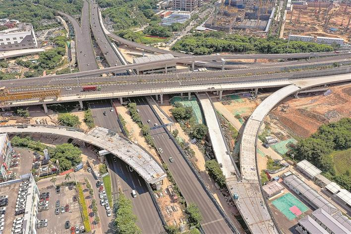新城立体交差点は前海合作区、宝安区、南山区の境界に位置し、南坪快速(桂湾一路に隣接)と宝安大道(深南大道に隣接)のジャンクションになる。新城立体交差点の建設プロジェクトは、北環大道、月亮湾大道、宝安大道、深南大道、107国道、桂湾一路、南坪快速など多くの幹線道路の交通に影響を及ぼし、複雑で高度な技術を要する。ランプウェイ総距離7・46㌔、ランプ橋12基、橋梁全長4731㍍、歩道橋2基、総合インフラのパイプトンネル約278㍍が建設されるという。(9月14日)