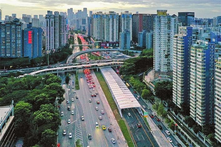 桂廟路快速化改造(一期)工事は全長約4・9㌔で、西は前海合作区の夢海大道から月亮大道を跨ぎ、東は南山区の濱海大道後海濱立体交差点に至る。地上道は双方向6~8車線で制限時速は50㌔。濱海大道側道から南山桂廟エリアを結ぶ。地下道は双方向6車線で制限時速80㌔、濱海大道快速道から福田、羅湖、前海自由貿易区への快速アクセスを実現する。