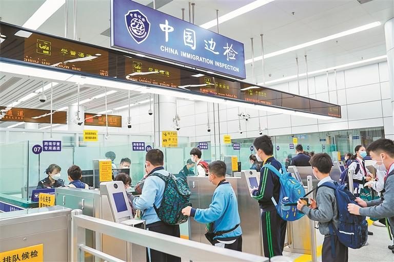 当日の早朝5時半、福田口岸皇崗出入国窓口では、当直職員が早くから検査設備などの確認をし、営業準備を行った。6時半にゲートが開くと、賑やかな足音と話し声と共に、様々な制服を着た児童たちが深センから中国香港への通学路に向かった。3階出国ロビーでは、高学年の生徒が嬉しそうに警備員と挨拶を交わし、慣れた様子で税関を通過。低学年の児童は職員の引率の下、手を繋いで学童集中検査エリアへと向かった。
