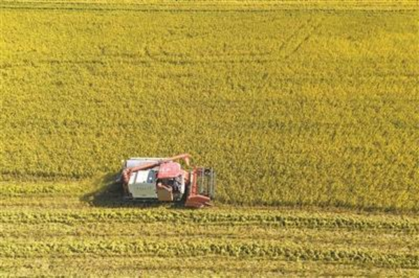 広州市にある黄埔大吉沙島で新米の収穫期を迎え、今年の二毛作後期の収穫量は1亩(約667㎡)あたり600㎏を超える見込みだという