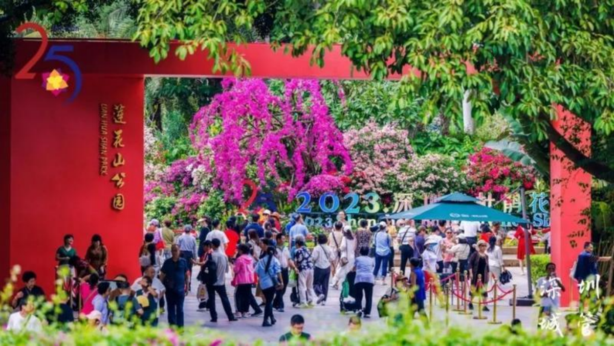 蓮花山公園と勒杜鹃谷公園で11月19日(日)から10日間「2023深センブーゲンビリア花展」が開催。メイン会場の蓮花山公園には延べ約69万人、サブ会場の宝安区勒杜鹃谷公園へは延べ約24万人が来場し、合計延べ93万人が訪れると予想されている。