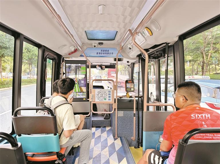 乗車するには「深巴出行」ミニプログラムの「自動駕駛」から予約し、任意のバス停から乗車コードをかざして乗車する。(8月27日)