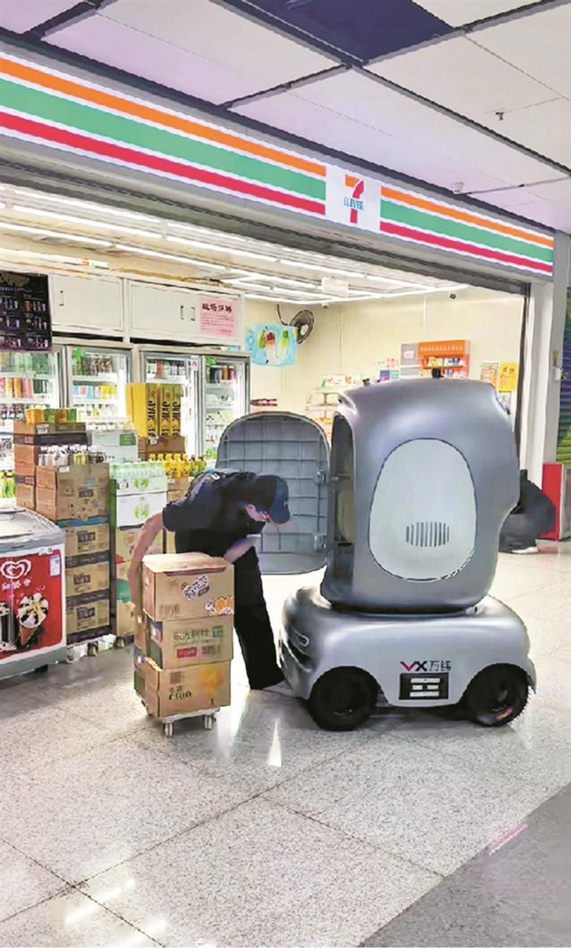 深セン地下鉄2号線「湾厦」駅で7月14日、世界初の物流配送テストが実施。AIが搭載された配送ロボットが自律して地下鉄に乗り、駅構内の店舗へ商品を届けることに成功した。