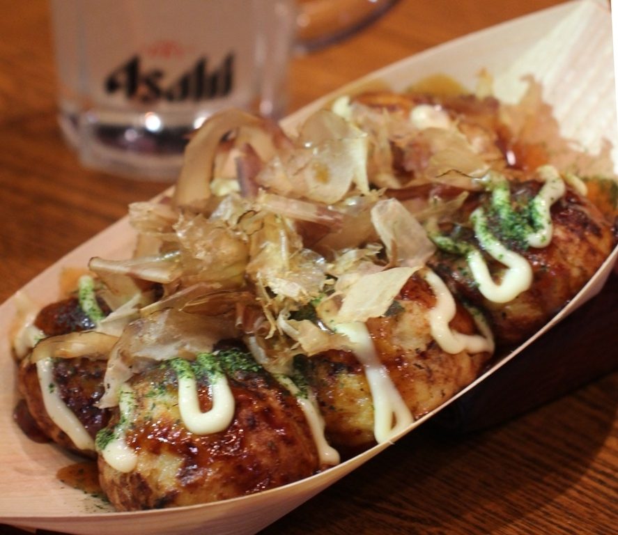 同店では関西風と広島風、ふたつのお好み焼きを用意。そのほかにも「ソースたこ焼き」(28元)や「オムそば」(46元)、「とん平焼き」(35元)などの樽ハイ倶楽部が進む鉄板料理も取り揃えている。