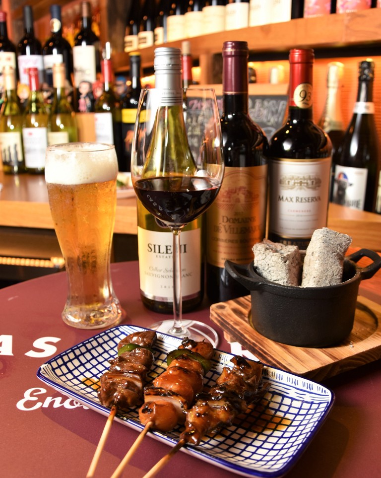 林楽路にあるお箸バル「ろびん」が「夏のお客様大感謝祭」を実施。5月24日(日)~6月7日(日)まで、金、土曜以外は、全種類の「ワインボト」を30%オフとしている。同店は、炭火で焼いた「和牛種ホルモン焼き」、「和牛種ハラミ焼き」などの「厳選黒毛和牛種の五臓六腑串焼き」(20元~/本)や「こはだのアンチョビオイル」、「平目の昆布〆熟成」、「濃厚かにみその甲羅焼き」のような「シェフ厳選! 新魚貝系Tapas」(38元~)など赤ワイン、白ワインともにマリアージュするメニューを取り揃えている。