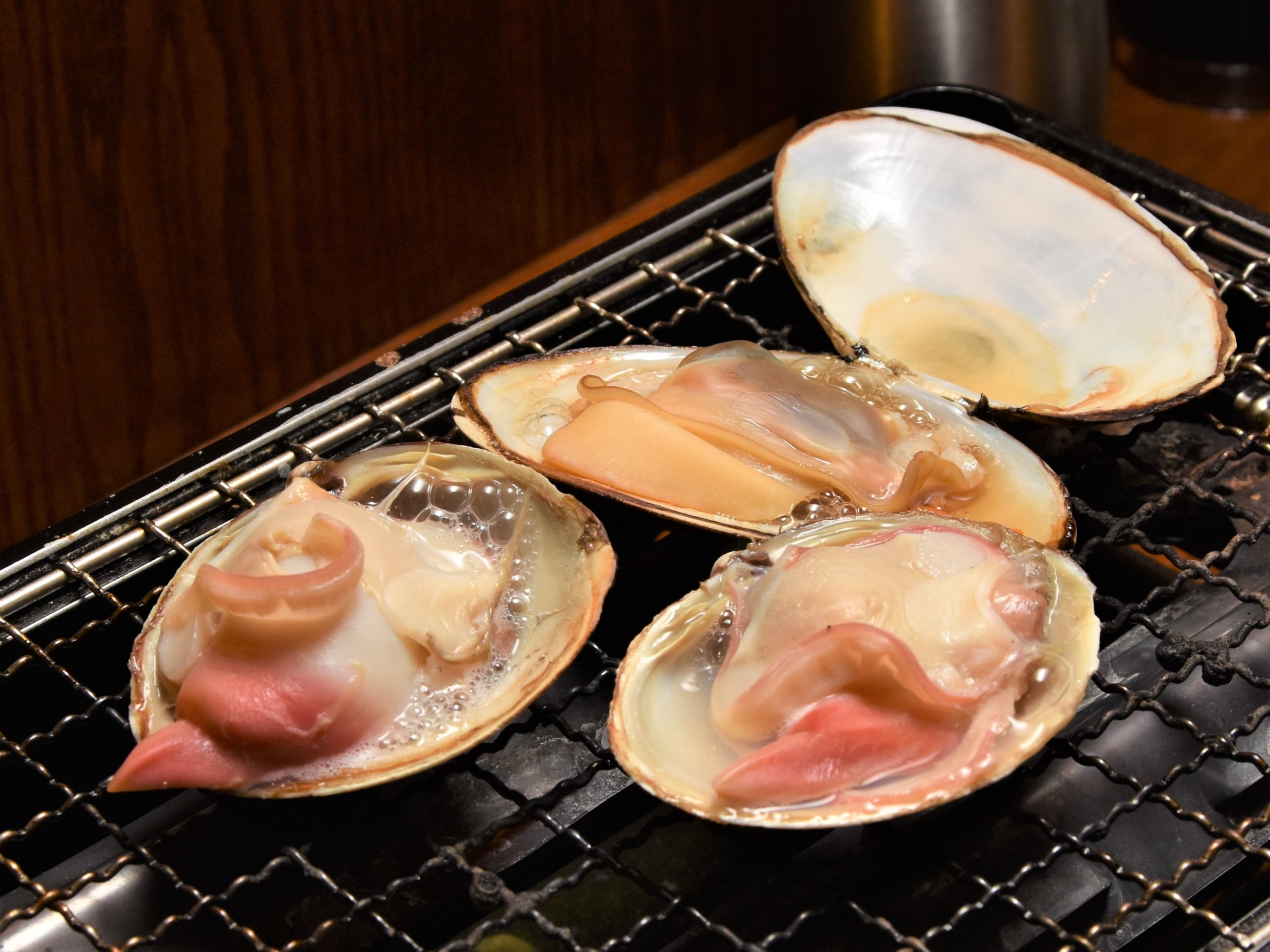 同店は、各テーブルで新鮮な貝類を焼ける浜焼きスタイルの居酒屋。「アワビ」(48元)や、「北寄貝」、「黄金貝」(各28元)など8種の貝類を用意。イチオシは、当日のオススメ貝が味わえる「磯貝盛り合わせ」(並盛り・188元、大盛り・458元)だ。