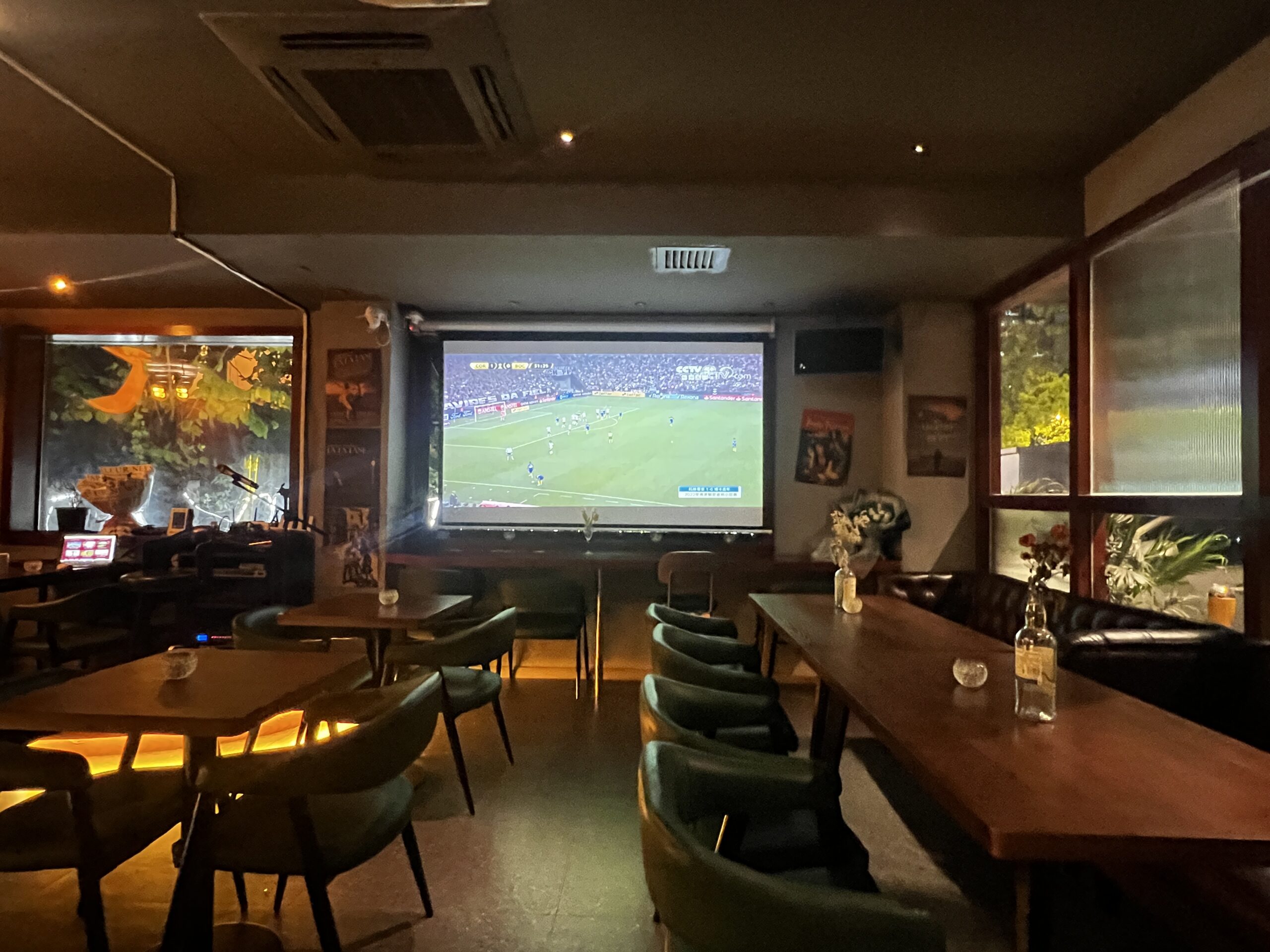 同店はじっくり酒を楽しむカウンター席、寛ぎを楽しむ革張りのソファー席、グループ客に対応した個室と様々なタイプの席を完備。重厚感が漂うシックな雰囲気に包まれていて〝大人のバー〟と呼ぶにふさわしい風格を持っている。また同店には大型スクリーンが完備されており、ワールドカップ期間中は日本戦を放映している。
