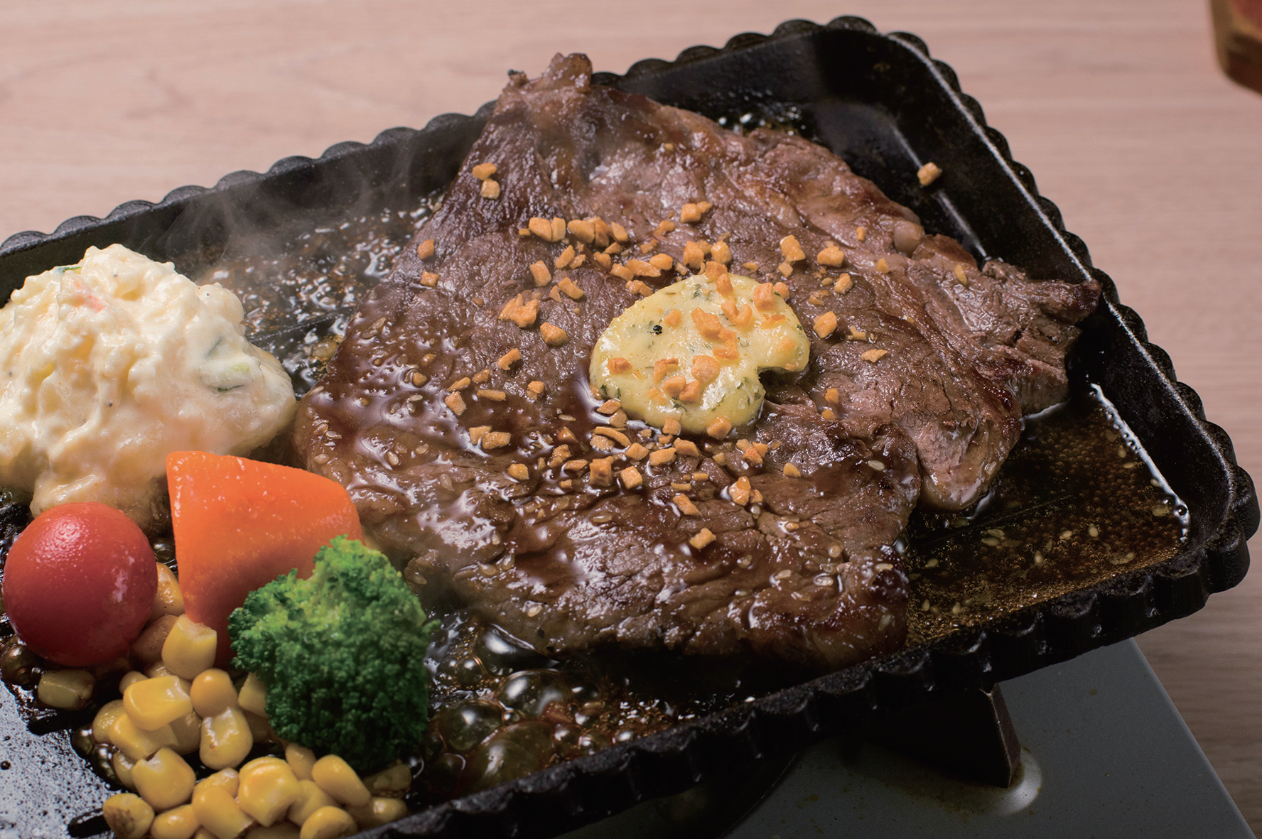 体育東路、金利来大厦2階にオープンしている牛肉専門店「ビーフマン」が「8月キャンペーン」を開催。8月中、月曜~木曜までは「ガーリックバターステーキ」(通常148元/200㌘)を98元で提供。また日曜日は「チルドハラミ」(通常1・4元)を1元、本格芋焼酎「富乃宝山(1・8㍑)」(通常580元)を388元、「サントリー角瓶(1・9㍑)」(通常980元)を550元としている。