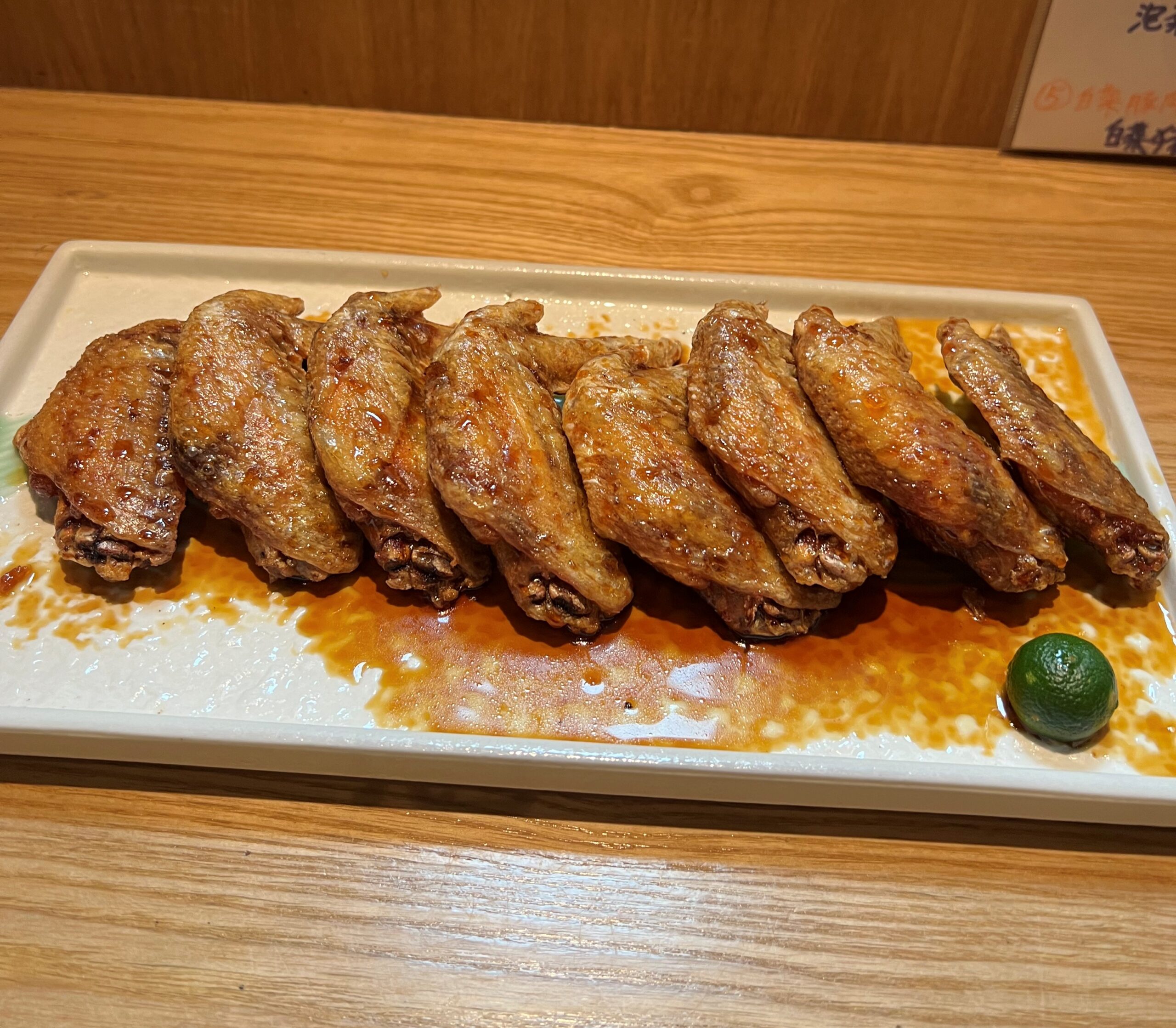 蕎麦亭の人気メニュー「甘カラ手羽先」